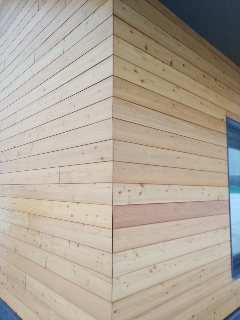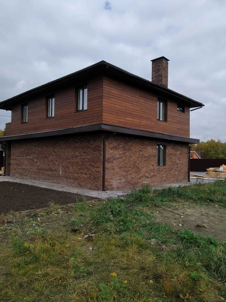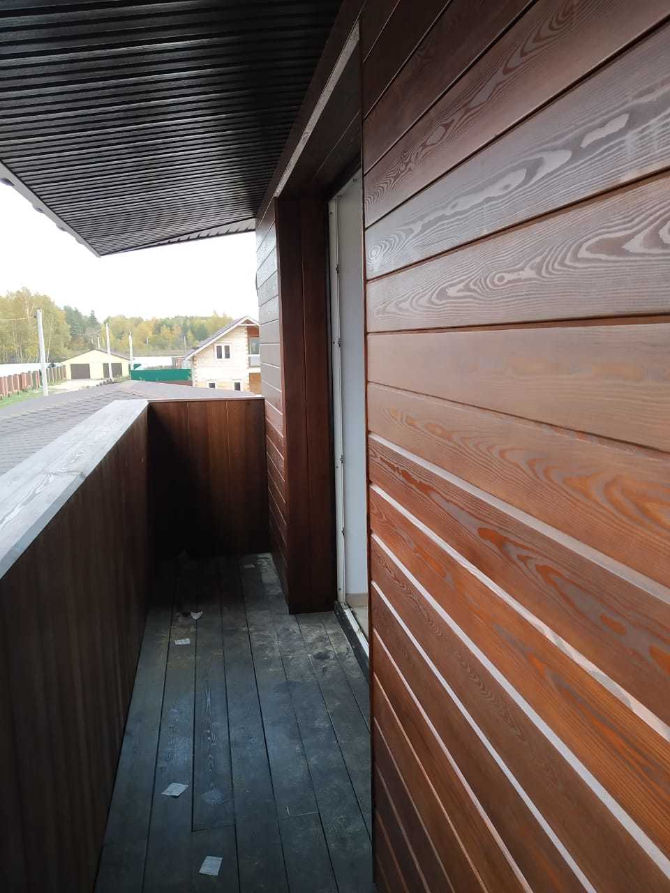 Утепленный и облицованный деревом фасад.