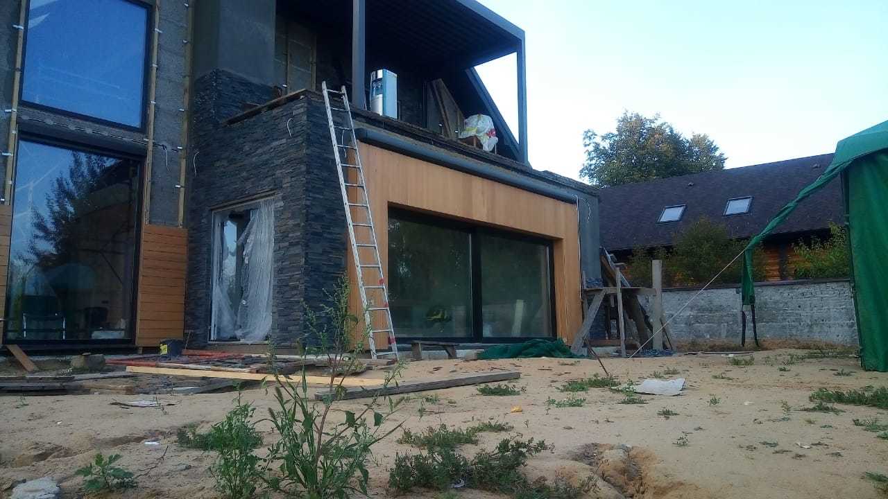 В зависимости от объема работ, монтаж обычно занимает от 2 до 7 дней. При необходимости фасад утепляется минераловатной плитой от 50 до 200 мм, затем монтируется декоративная часть - деревянные фасадные панели, фасадная доска или планкен.
